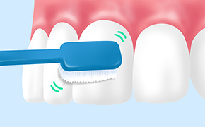 当院の歯みがき指導では、ご家族の方に仕上げみがきのコツをアドバイスしています。仕上げみがきの際は力を入れすぎないように注意し、みがき残しのないよう丁寧に。毎日忘れずにケアしてあげてください。